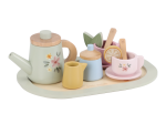 Pozvěte kamarády, plyšáky nebo panenky na čaj o páté! Tato roztomilá dřevěná čajová sada obsahuje vše potřebné pro stylové pohoštění. Děti mohou podávat čaj s mlékem, cukrem, plátkem citronu nebo lístkem máty – zkrátka jako při skutečné návštěvě.