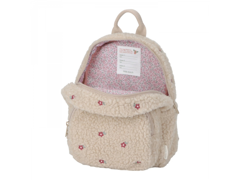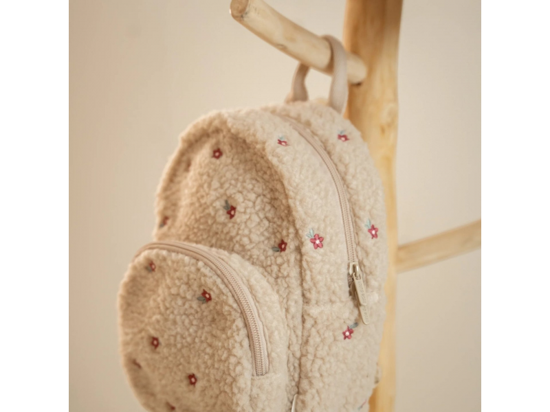 Roztomilý dětský batůžek z měkkého plyšového materiálu s květinovou výšivkou je ideálním doplňkem na výlety do přírody i procházky městem. Batůžek má nastavitelné ramenní popruhy a hrudní pás pro příjemné nošení. Držadlo umožňuje přenášení v ruce. Batůžek je vybaven vnější kapsou na zip pro uložení drobností a vnitřní prostor s kapsou, elastickým držákem na pití a jmenovkou.