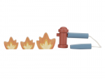 Sadu tvoří hasičský náklaďák, čtyři figurky hasičů, plameny, hydrant, strom s kočičkou a zábrana – vše, co je potřebné pro napínavou záchrannou misi.