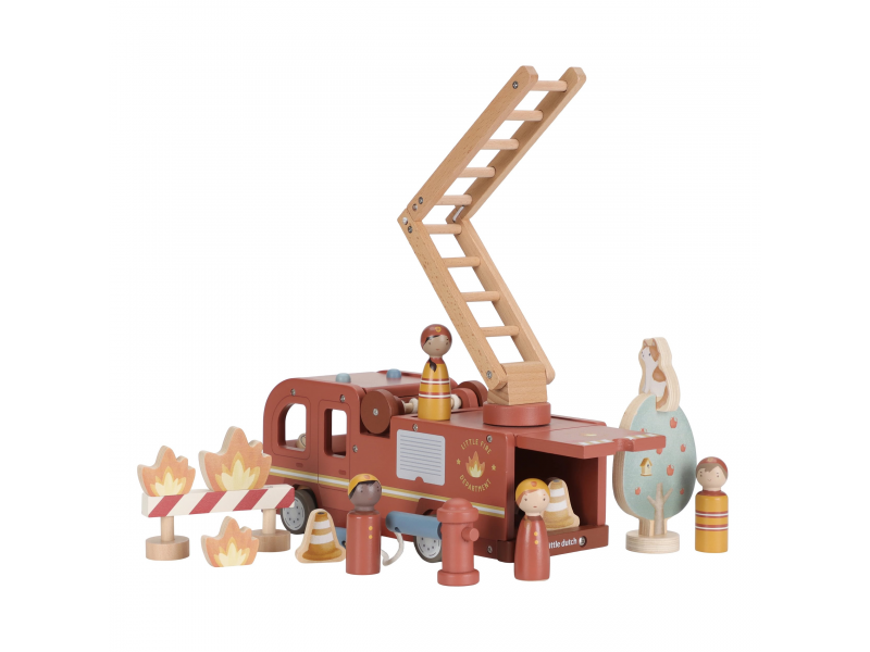 Hasičský náklaďák se čtyřmi hasiči je připraven vyrazit do akce! Někdy je potřeba zachránit kočičku ze stronu, jindy uhasit požár nebo pomoci policii při dopravní nehodě. Pro všechny tyto situace je náklaďák vybaven výsuvným žebříkem a odnímatelnou hadicí, kterou lze připojit k hydrantu nebo přímo k vozu.