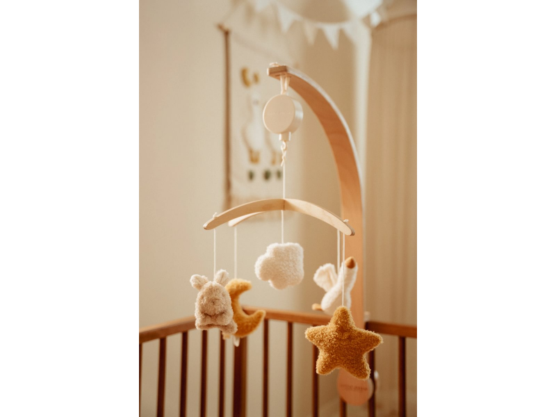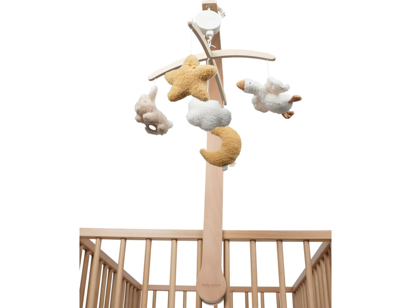 Krásný dřevěný kolotoč z kolekce hraček Little Dutch Newborn Naturals hraje po natažení ukolébavku pro uklidnění vašeho miminka před spaním. Pozornost dítěte upoutá pět otáčejících se hraček v podobě králíčka, husy, hvězdičky, mráčku a měsíce. Kolotoč podporuje klidné usínání a zároveň stimuluje smyslový vývoj miminka.