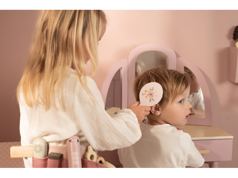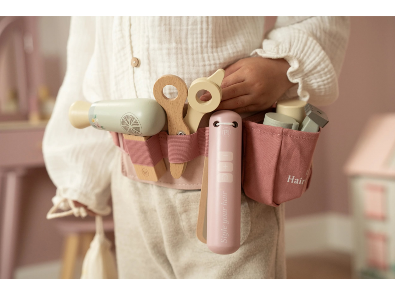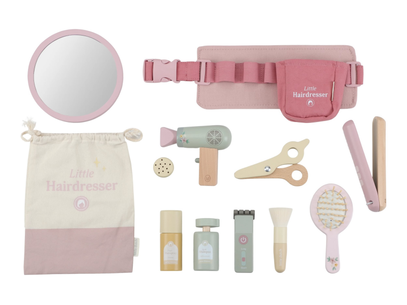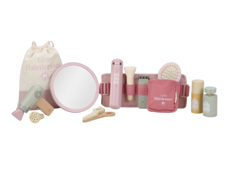 Stříhání, foukání a vytváření účesů jako u opravdového kadeřníka, to vše přináší dětem tato kouzelná dřevěná sada Little Dutch. Najdou v ní vše, co potřebují k otevření vlastního salonu krásy pro panenky, sourozence i kamarády. Kdo bude první zákazník?