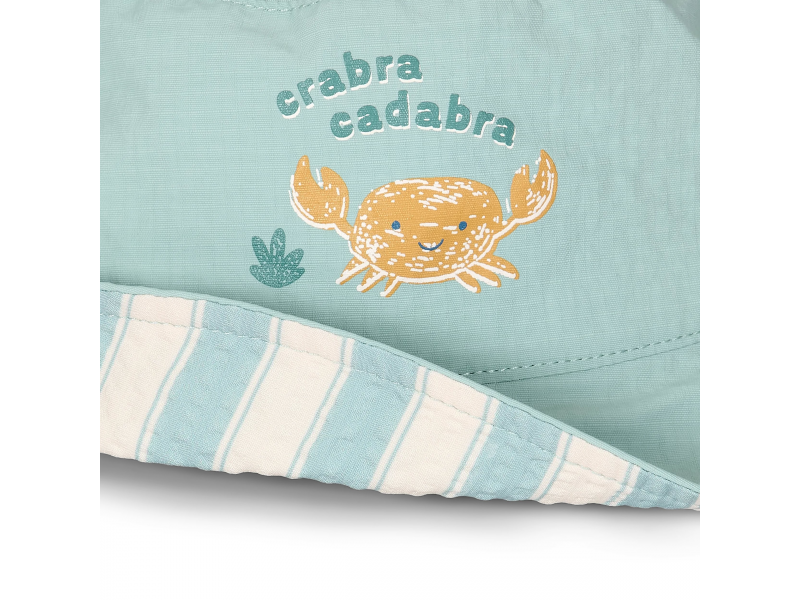 Oboustranný klobouček s krásným potiskem chrání vaše dítě před sluncem při koupání u moře i doma na zahradě. Ať už vaše děti milují skákání ve vlnách, koupání v bazénu nebo si rády staví hrady z písku, s touto čepičkou si mohou bezstarostně užívat celý den. Oboustranné provedení nabízí na výběr dva designy klouboučku – jednobarevný s potiskem a pruhovaný.
