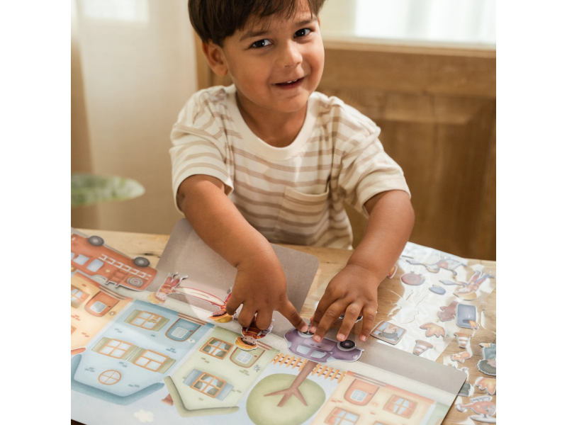 Samolepky se snadno připevňují i odlepují, což umožňuje nekonečné hraní bez nepořádku. Ideální pro kreativní zábavu doma i na cestách. Vyrobeno z pevného papíru, který vydrží i časté používání.