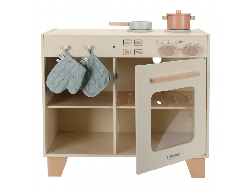 Díky možnosti kombinace s lednicí nebo pračkou z kolekce dřevěných hraček Little Dutch lze vytvořit plně vybavenou herní kuchyň. Tu pak můžete doplnit dalšími dřevěnými hračkami Little Dutch, např. kávovarem, toustovačem, kuchyňskou váhou, krájecím ovocem, krájecí zeleninou, čajovým servisem apod.