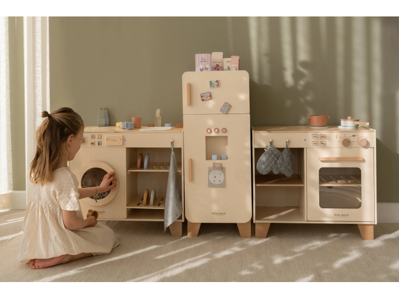 Lednice je skvělým doplňkem k dětské kuchyňce a pračce z kolekce dřevěných hraček Little Dutch. Můžete tak vytvořit plně vybavenou herní kuchyň, kterou lze dále vybavit dalšími dřevěnými hračkami Little Dutch, např. kávovarem, toustovačem, kuchyňskou váhou, krájecím ovocem, krájecí zeleninou, čajovým servisem apod.