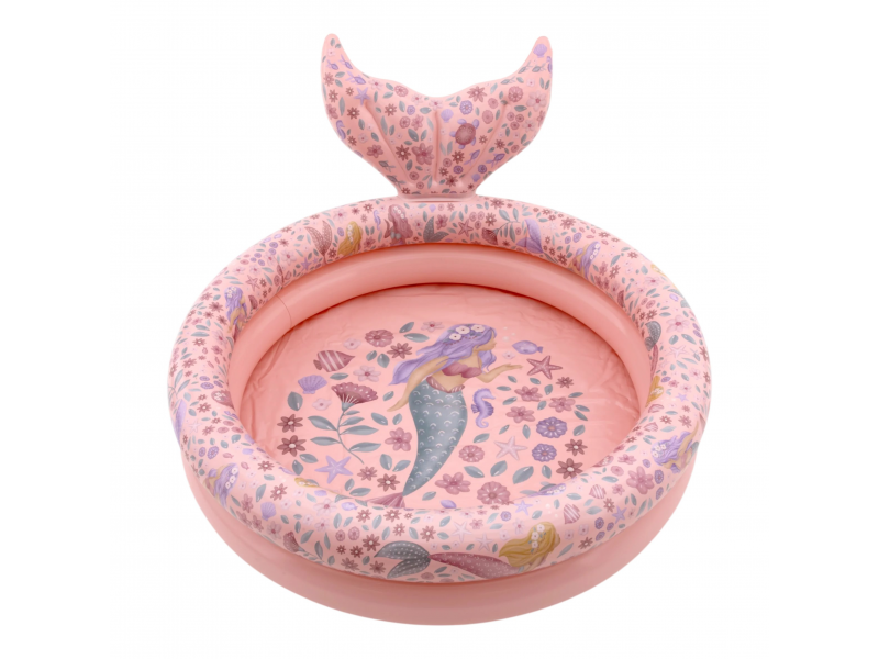 Nafukovací bazének pro nejmenší s krásným potiskem motivů mořské víly a květin je ideální doplněk na zahradu během horkých letních dní. Pro snadné vylévání vody je bazének vybaven vypouštěcím ventilem.