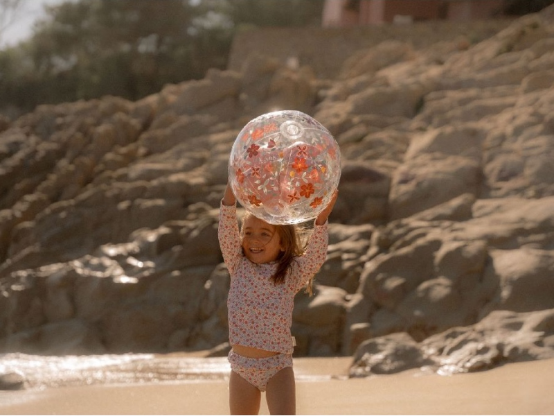 Nafukovací míč v originálním provedení s nafukovací květinou uvnitř míče a s krásným květinovým potiskem využijí vaše děti pro hraní na zahradě i na pláži u moře.