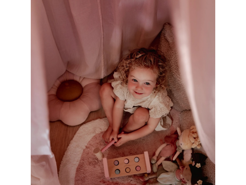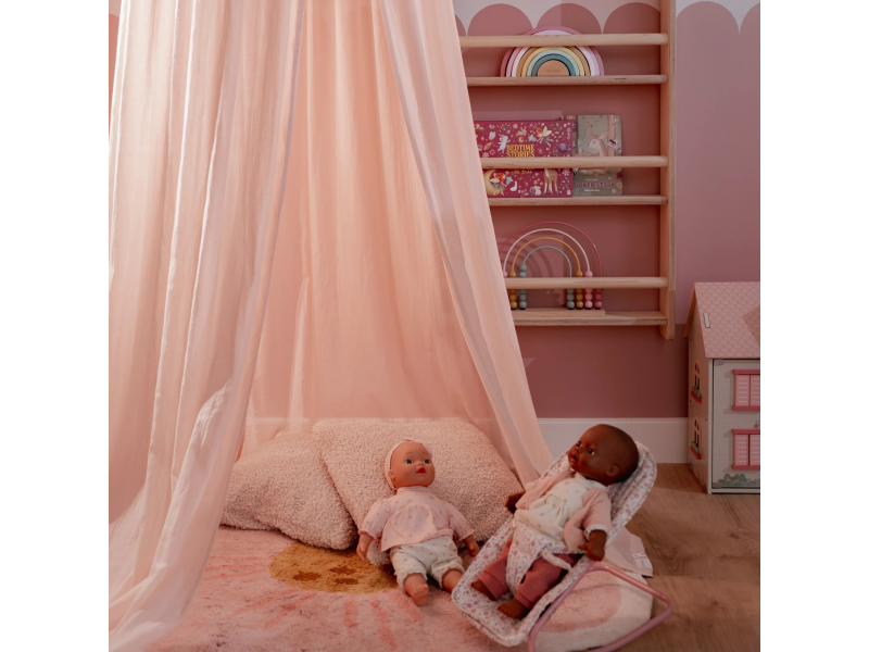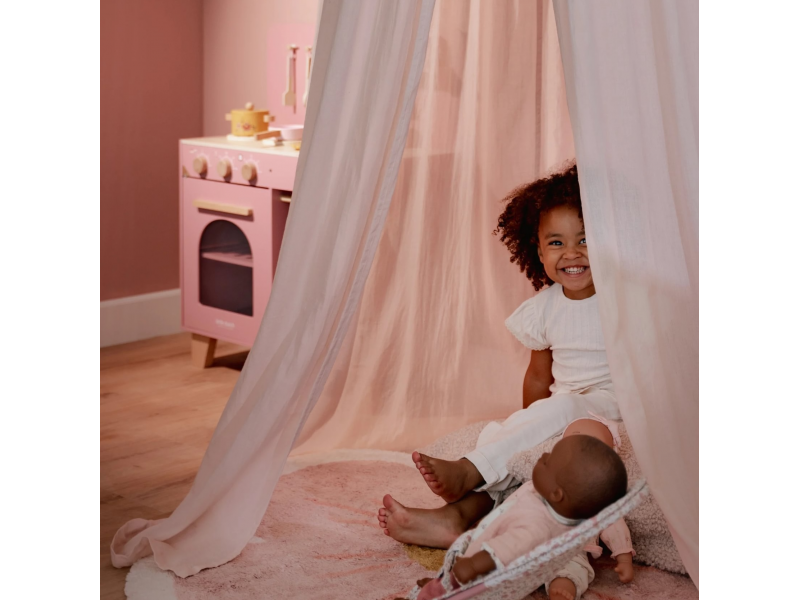 Lehká látka nebes je připevněna na obruči a s pomocí úchytu ji snadno připevníte ke stropu.
