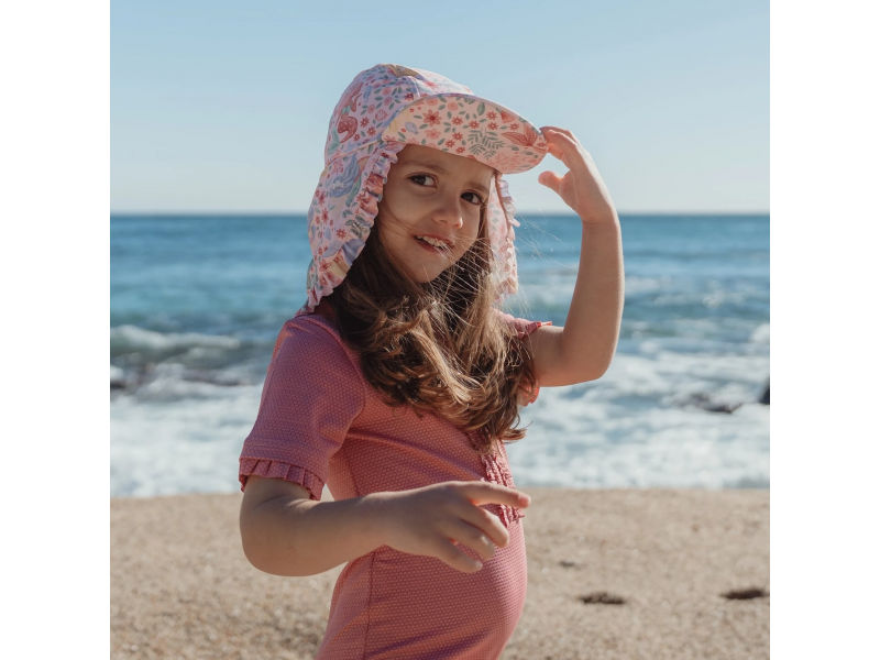 Čepička s krásným potiskem chrání vaše dítě před sluncem při koupání u moře i doma na zahradě. Ať už vaše děti milují skákání ve vlnách, koupání v bazénu nebo si rády staví hrady z písku, s touto čepičkou si mohou bezstarostně užívat celý den.