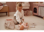 Stylová přebalovací taška Little Dutch je ideálním doplňkem při hraní s panenkami i plyšáky. Díky svému praktickému provedení nabídne dětem vše potřebné k péči o jejich oblíbenou panenku nebo plyšového kamaráda. Uvnitř tašky se nachází měkká látková plenka, pohodlná přebalovací podložka a roztomilý bryndáček. Lehká taška je uzpůsobena pro malé dětské ruce, takže ji děti snadno přenesou kamkoli.