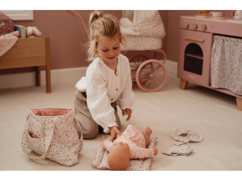 Stylový květinový design krásně ladí s dalšími doplňky pro panenky z kolekce Little Dutch Soft Flowers.