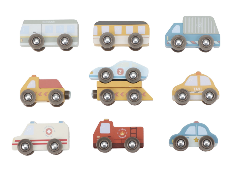 Autíčka jsou kompatibilní s vláčkodráhou Little Dutch a jejími rozšiřujícími sadami. Děti si tak mohou vytvořit vlastní město plné akce, příběhů a pohybu. Hra podporuje představivost, jemnou motoriku a samostatné vyprávění.
