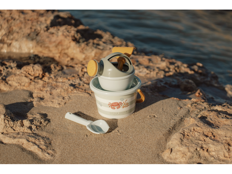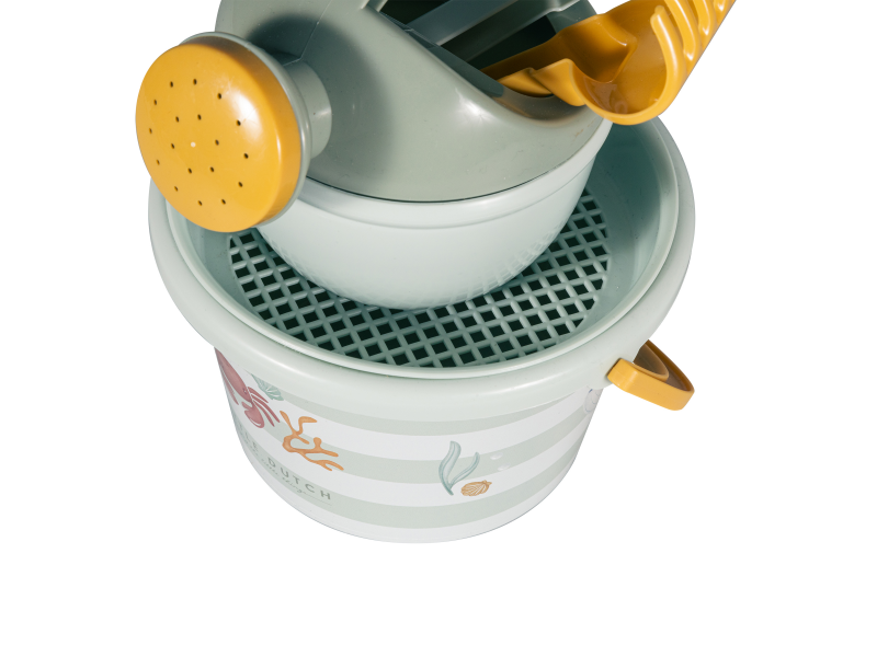Sada na písek s krásným potiskem motivů ze života pod mořskou hladinou se bude dětem hodit doma na zahradě i u moře na pláži. Sadu tvoří kyblík, konvička, hrabičky, lopatka a sítko v kvalitním provedení z pevného plastu.
