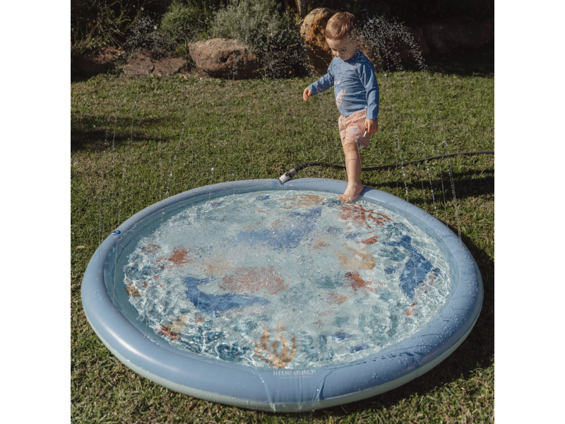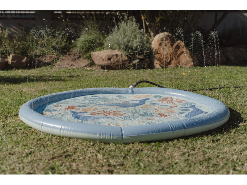 Originální hrací podložka s vodotryskem, který vytvoříte jednoduše připojením na zahradní hadici s pomocí přiložené spojky. Podložka s krásným potiskem motivů ze života pod mořskou hladinou je ideální doplněk na zahradu během horkých letních dní. Děti si budou užívat běhání přes stříkající vodotrysk i hraní si s vodou na podložce, která funguje jako mělký bazének.