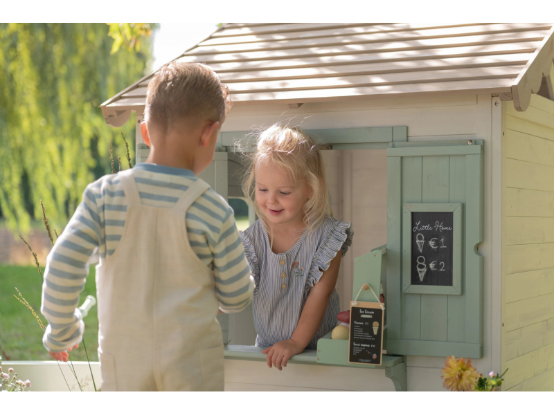 Dřevěný zahradní domek Little Dutch vytvoří na vaší zahradě útulné místo, kde si děti mohou vytvořit vlastní „malý domov“ a nechat naplno pracovat fantazii. Otevřete okenice, dejte květiny na parapet a nezapomeňte zkontrolovat schránku – třeba zrovna přišla pošta! Domek je ideální pro hry na domácnost, obchod, kavárnu nebo jen pro klidné posezení a povídání s kamarády. Díky dveřím a oknům se do něj děti snadno dostanou a otevřený, přístupný design láká ke společné hře venku.