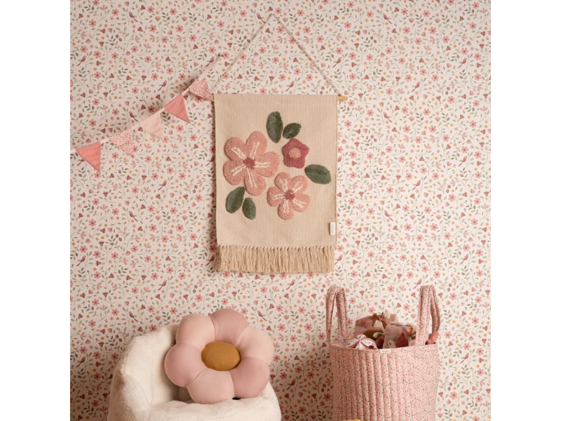 Dodejte dětskému pokojíčku hřejivý a hravý nádech s touto nádhernou nástěnnou dekorací z kolekce Little Dutch Fairy Garden. Jemné květiny, hebce tkané detaily a ozdobné třásně vytvářejí útulnou atmosféru plnou radosti a barev.