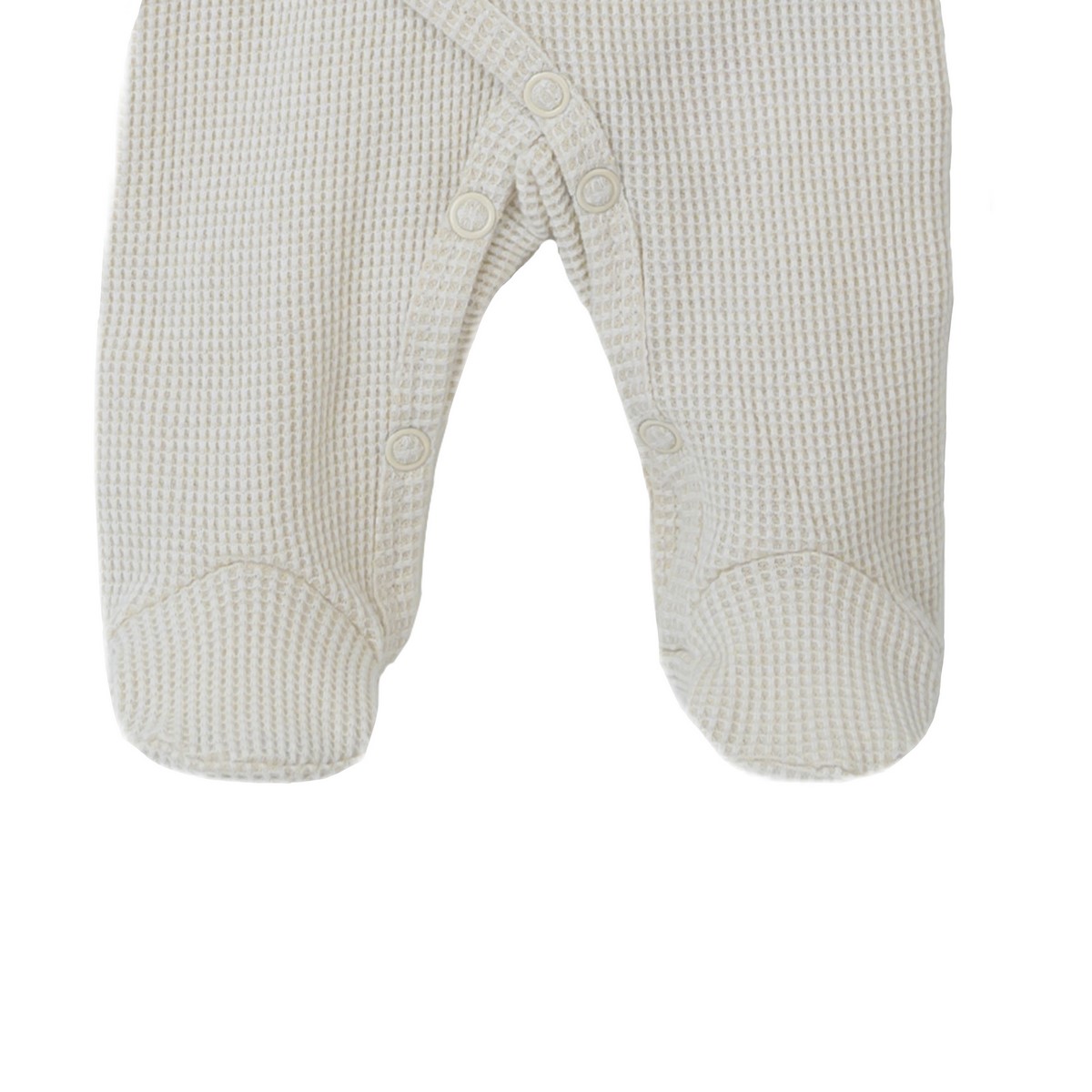 Prodyšný a měkoučký overal pro novorozence z měkké a prodyšné bavlny s waflovou strukturou je tvořen jedním kusem snadno se obléká a svléká zavinovací design patentky v oblasti mezi nožičkama usnadní přebalování certifikát Öko-Tex, který dokládá nulový obsah škodlivin materiál: 100 % bavlna vel. 50