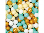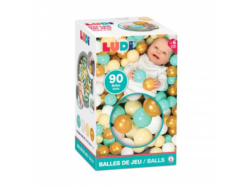 Díky průměru 6 cm se míčky dětem snadno drží, hází i mačkají – podporují tak rozvoj jemné motoriky a koordinace pohybu. Jemné odstíny ladí s každým interiérem: kombinace bílé, béžové, modré a zlaté vytváří elegantní a nadčasový vzhled, který si zamilují děti i rodiče.