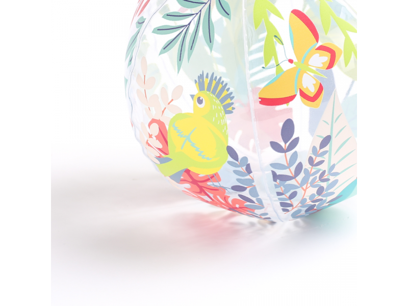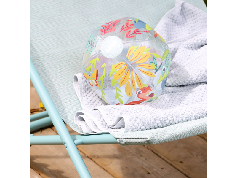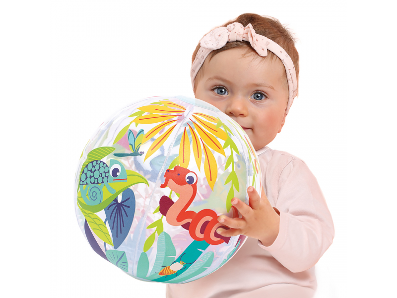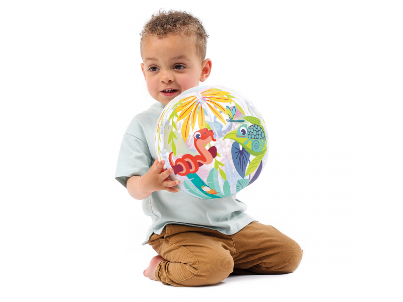 Nafukovací míč Jungle Ball je navržený speciálně pro nejmenší – pomáhá dětem objevovat svět pohybu, hmatu i zraku. Díky tropickému motivu a veselým barvám přitahuje pozornost a probouzí přirozenou zvídavost dítěte. Děti si s míčem mohou házet, kutálet ho, odrážet i sledovat jeho pohyb. Hraní s míčem stimuluje hrubou motoriku, reflexy i představivost.