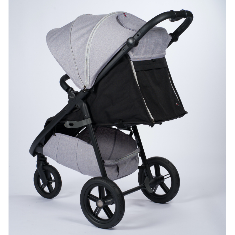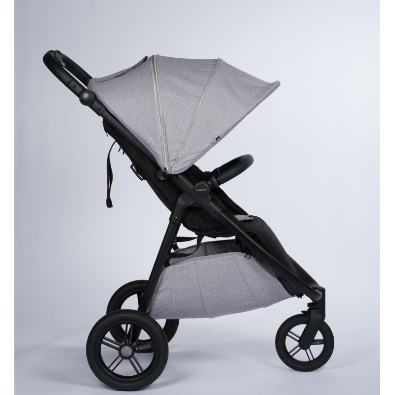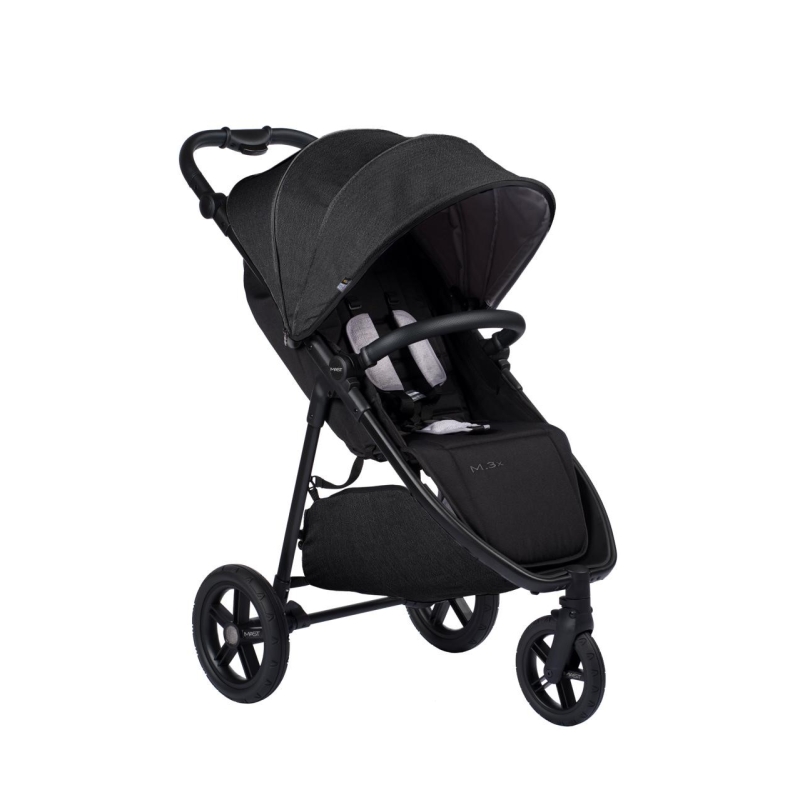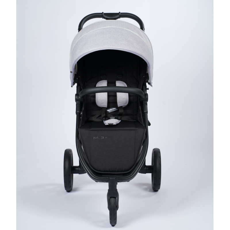 Lehký rám je vyrobený z hliníku a díky odpružení všech kol kočárek M.3× zajišťuje optimální jízdu pro dítě i rodiče. M.3× splňuje normu EN 1888–2.