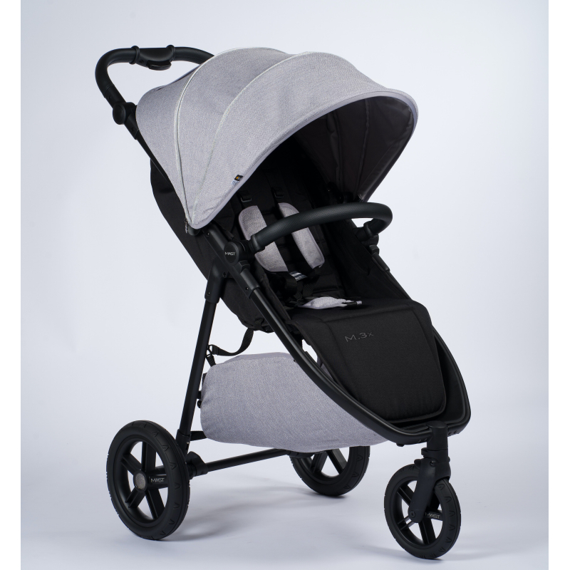 Kočárek M.3x (POZN.: kočárek obsahuje stříšku a košík ve 2 barvách: Onyx a Granite) Vstříc dalšímu dobrodružství... M.3x je náš terénní kočárek, který je díky vysoce výkonnému systému tří kol navržen tak, aby byl stejně pohodlný ve městě jako na polních cestách. Vysoce profilovaná gumová kola zajišťují větší pohodlí a jsou navržena tak, aby odolala i těm nejdrsnějším cestám. Jako rodina můžete zažít a objevit spoustu nového, nenechte se zastavit a vyrazte vstříc dobrodružství! Velká stříška kočárku M.3x poskytuje ve všech polohách ochranu s UV faktorem 50 a poskytne tak vašemu dítěti tolik potřebné zastínění.