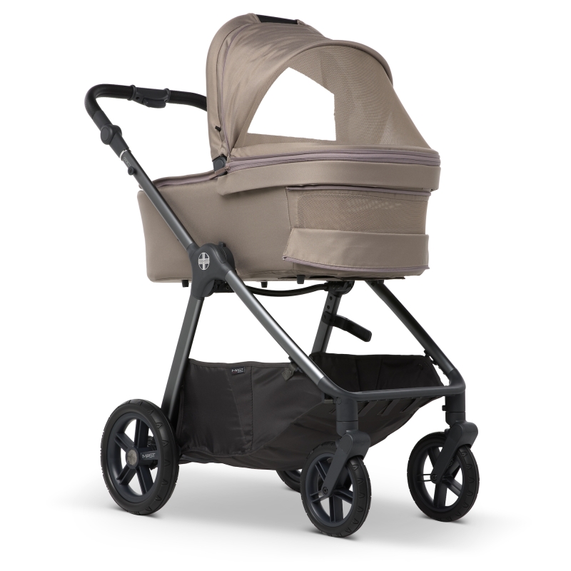 Kočárek M.5× má opravdu velký a pohodlný nákupní koš s nosností až 5 kg. Mimořádně prostorný úložný prostor vám zajistí, že budete mít všechny potřebné věci pro dítě vždy po ruce.