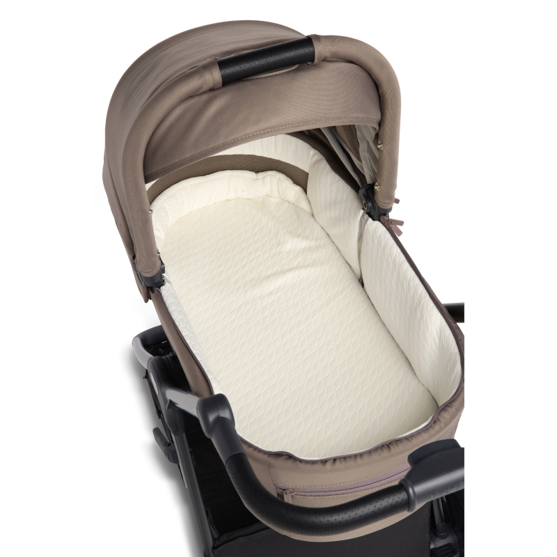 Hluboký díl M.5× zahrnuje velmi pohodlnou a prodyšnou matraci. Celý hluboký díl je velmi dobře odvětraný a zajišťuje tak optimální cirkulaci vzduchu, čímž je zaručený klidný a bezpečný spánek vašeho miminka. Dále můžete podle potřeby otevřít ventilační otvor pod základnou, na stříšce nebo v čelní části hlubokého dílu. Integrovaná síťka s ochranou proti UV záření poskytuje dodatečnou ochranu před škodlivými slunečními paprsky. Hluboký díl můžete snadno nasadit na podvozek kočárku pomocí adaptérů, které jsou součástí balení, a stisknutím uvolňovacích tlačítek opět odejmout.