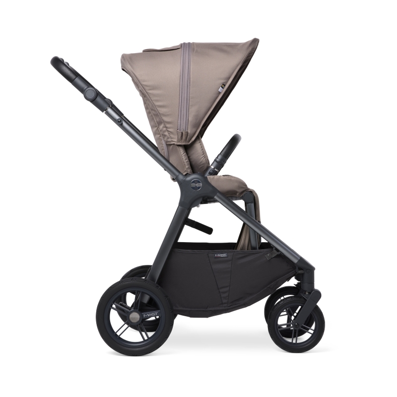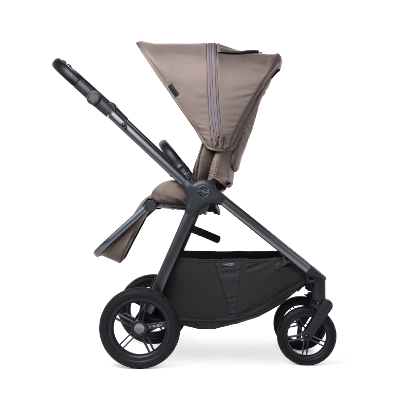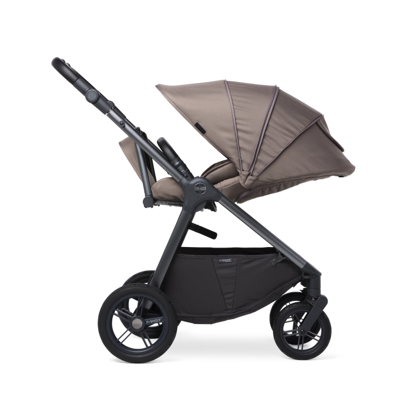 Reverzní sedací část kočárku M.5× vám dává svobodu volby směru jízdy a vaše děťátko tak může být usazeno čelem k rodičům nebo naopak s výhledem do okolí. Můžete ji nastavit do 3 pozic sklonu, přičemž nejvyšší poloha umožňuje dítěti sedět vzpřímeně.
