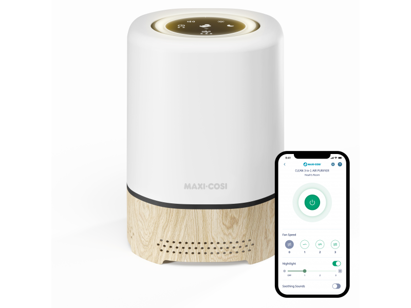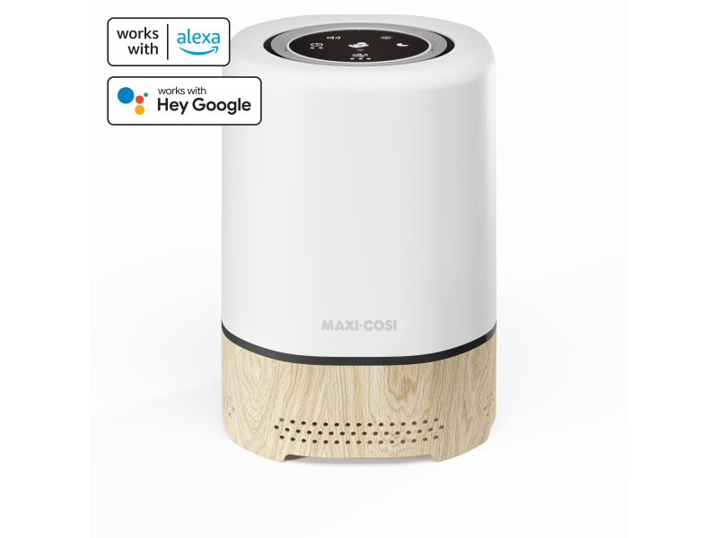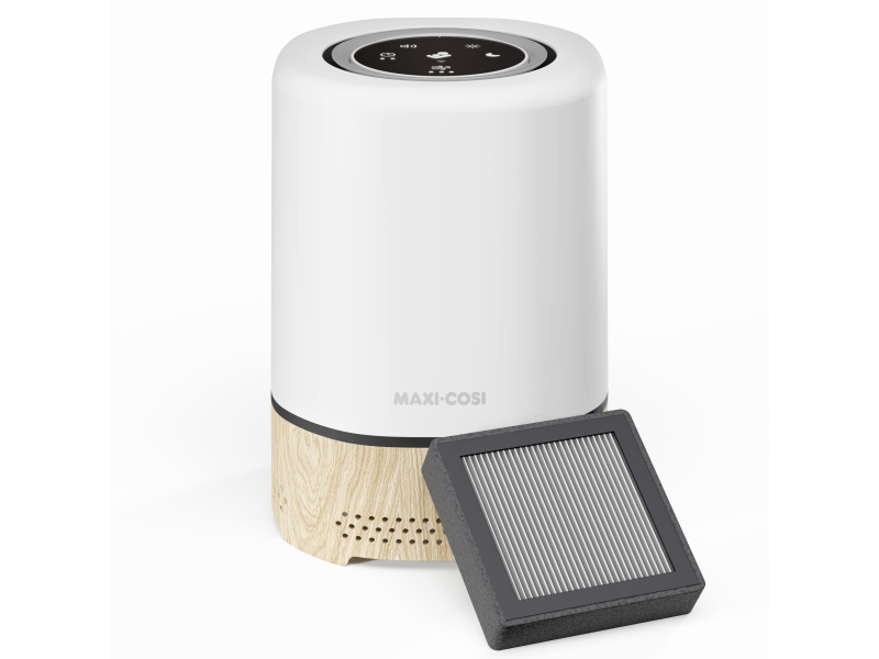 Čistička vzduchu Maxi-Cosi 3v1 Clean je chytré zařízení do dětského pokoje, které pomáhá vytvořit čisté a klidné prostředí pro spánek i každodenní pohodu. V jednom přístroji kombinuje čističku vzduchu, noční světlo a reproduktor s uklidňujícími zvuky. Díky výkonné HEPA 13 filtraci odstraňuje ze vzduchu až 99,97 % prachu, pylu, alergenů a dalších částic, takže se vašemu dítěti dýchá lépe ve dne i v noci. Nastavitelné světlo a 4 uklidňující zvuky vám umožní vytvořit příjemnou atmosféru před usínáním. Vše pohodlně nastavíte i na dálku přes aplikaci Maxi-Cosi Connected Home.