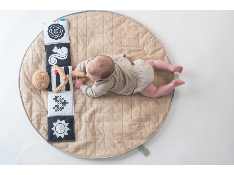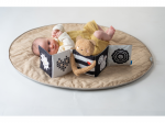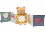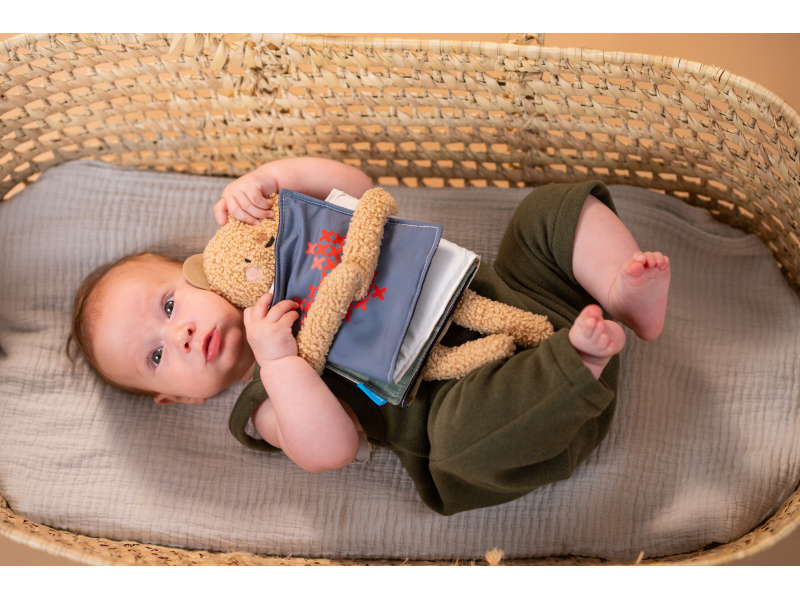 Plyšový medvídek s textilní knížkou miminko zabaví a zároveň pomáhá rozvíjet jeho jednotlivé smysly. Oboustranná knížka nabízí stranu pro novorozence s vysoce kontrastními černobílými ilustracemi a stranu s výraznými barevnými ilustracemi a aktivitami ke zkoumání pro starší miminko. Hračka podněcuje zvídavost, podporuje vývoj dítěte a zároveň nabízí příjemnou porci mazlení.