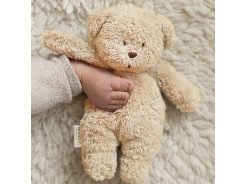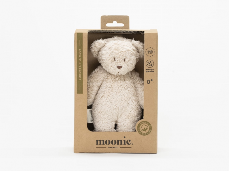 Roztomilý medvídek Moonie je dokonalým společníkem pro každé dětské dobrodružství – ať už doma, na cestách nebo při usínání. Dítě si ho zamiluje pro jeho hebkost, ideální velikost a příjemné mačkání, objímání či mazlení. Pomáhá přirozeně rozvíjet jemnou motoriku, hmat a fantazii.