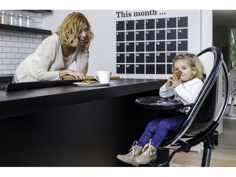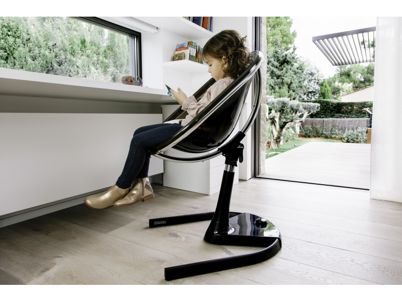 Stylová židlička Mima Moon je to pravé pro milovníky soudobého špičkového designu. Svým řešením 3v1 umožní dítěti být již od narození až do školního věku součástí rodinného stolování. Díky různým možnostem náklonu a volitelnému vkládacímu polstrování je vhodná pro miminka od narození. S odnímatelným pultem a opěrkou nohou je použitelná jako židlička na krmení pro batolata od 6 měsíců. Vyjmutím vnitřního sedáku židličku snadno přeměníte v židli pro větší děti, které ji mohou používat samostatně u stolu. Židlička je velmi jednoduše výškově nastavitelná a ve své maximální výšce se hodí i ke kuchyňským barovým pultům. Pevná a stabilní konstrukce je zárukou bezpečí pro dítě. Kolečka Easy-Glide usnadňují přesunování židličky v interiéru.