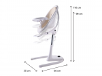 Stylová židlička Mima Moon je to pravé pro milovníky soudobého špičkového designu. Svým řešením 3v1 umožní dítěti být již od narození až do školního věku součástí rodinného stolování. Díky různým možnostem náklonu a volitelnému vkládacímu polstrování je vhodná pro miminka od narození. S odnímatelným pultem a opěrkou nohou je použitelná jako židlička na krmení pro batolata od 6 měsíců. Vyjmutím vnitřního sedáku židličku snadno přeměníte v židli pro větší děti, které ji mohou používat samostatně u stolu. Židlička je velmi jednoduše výškově nastavitelná a ve své maximální výšce se hodí i ke kuchyňským barovým pultům. Pevná a stabilní konstrukce je zárukou bezpečí pro dítě. Kolečka Easy-Glide usnadňují přesunování židličky v interiéru.