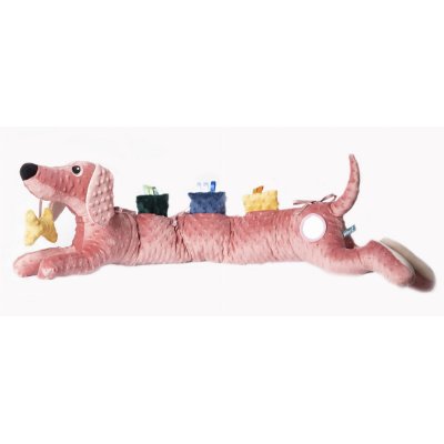 Senzorická hračka Multifunkční senzorická hračka pro nejmenší děti (0+) Stimuluje smysly: hmat, zrak, sluch Obsahuje černobílé kapsičky a smyslové pytlíčky s přírodní výplní Šustící ouška a hravý ocásek pro rozvoj jemné motoriky Bezpečné zrcátko pro první objevování a vizuální stimulaci Lehká, snadno uchopitelná, vhodná doma i na cestách Možnost použití jako mantinel do postýlky, kojící polštář, polštář pro ležení na bříšku Hypoalergenní výplň, měkký minky materiál Technické parametry Rozměry: 115 × 35 × 10 cm Vhodné pro děti: 0+ Materiál: minky, bavlna, hypoalergenní silikonová výplň Certifikace: EN-71, OEKO-TEX® Standard 100 Země původu: EU