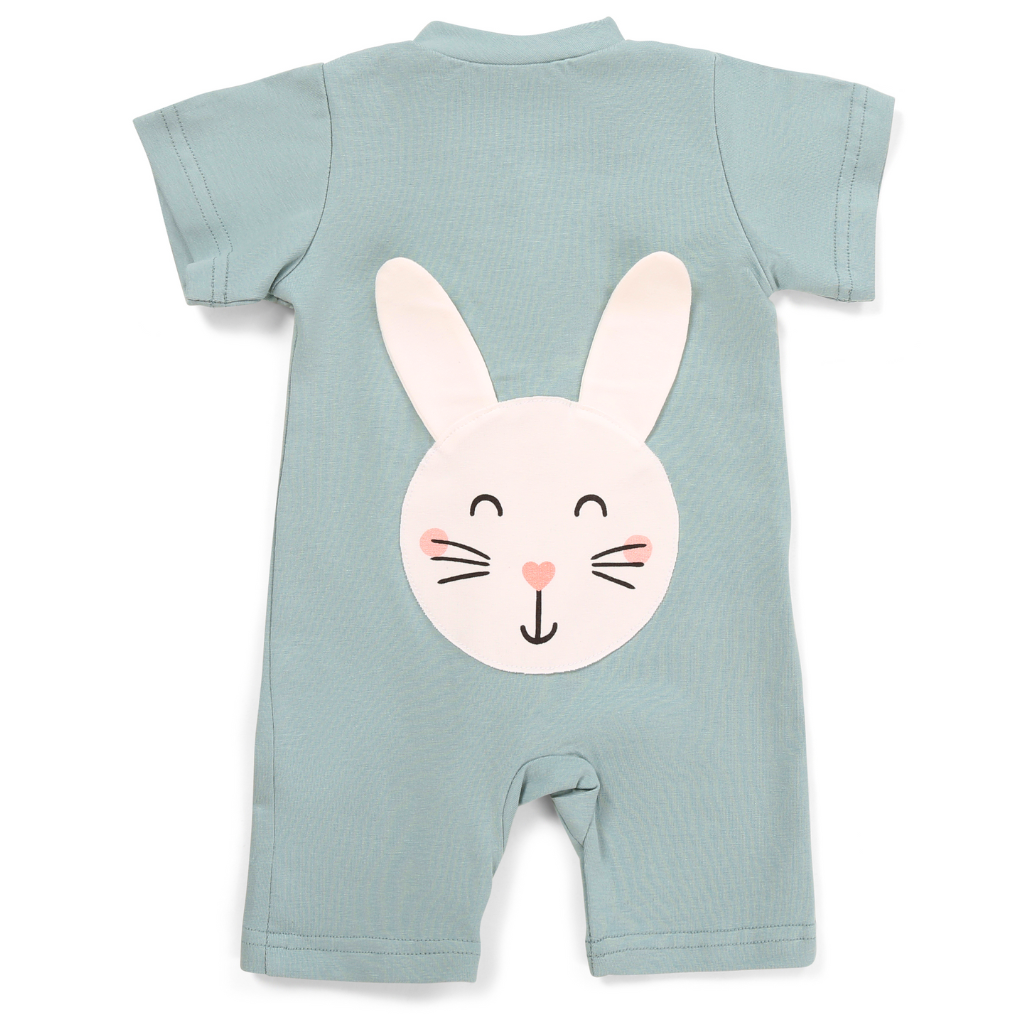 Dětský letní overal na zip s krátkým rukávem Moniel Králík Pastel mintová je ideální jarní a letní oblečení pro děti. Nosit se dá jako dětské lehké pyžamo, domácí oblečení, ale i pohodlné letní oblečení na ven. Je ušitý z přírodní bavlněné látky hebké na dotek a odolné proti častému praní. Overal je ušitý v ČR. Velikosti od narození až do 4 let.