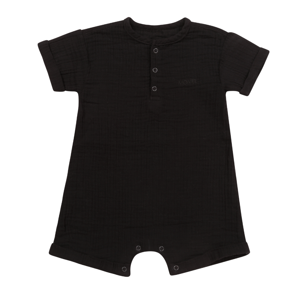 Moniel Dětský rostoucí mušelínový overal s krátkým rukávem Black 50/56/62- 0-6 měsíců.