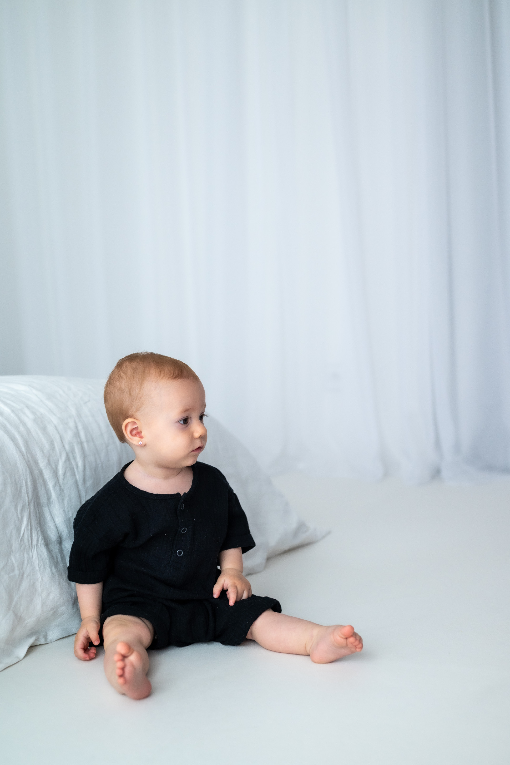 Dětský mušelínový overal s krátkým rukávem Moniel je ideální oblečení na jaro a léto. Má oversize střih a vydrží tři běžné dětské velikosti. Je prodyšný, hebký a skvělý do horkých dnů. Má patentky u krku a v rozkroku pro pohodlné oblékání i přebalování miminka. Velikosti od narození až do dvou let.