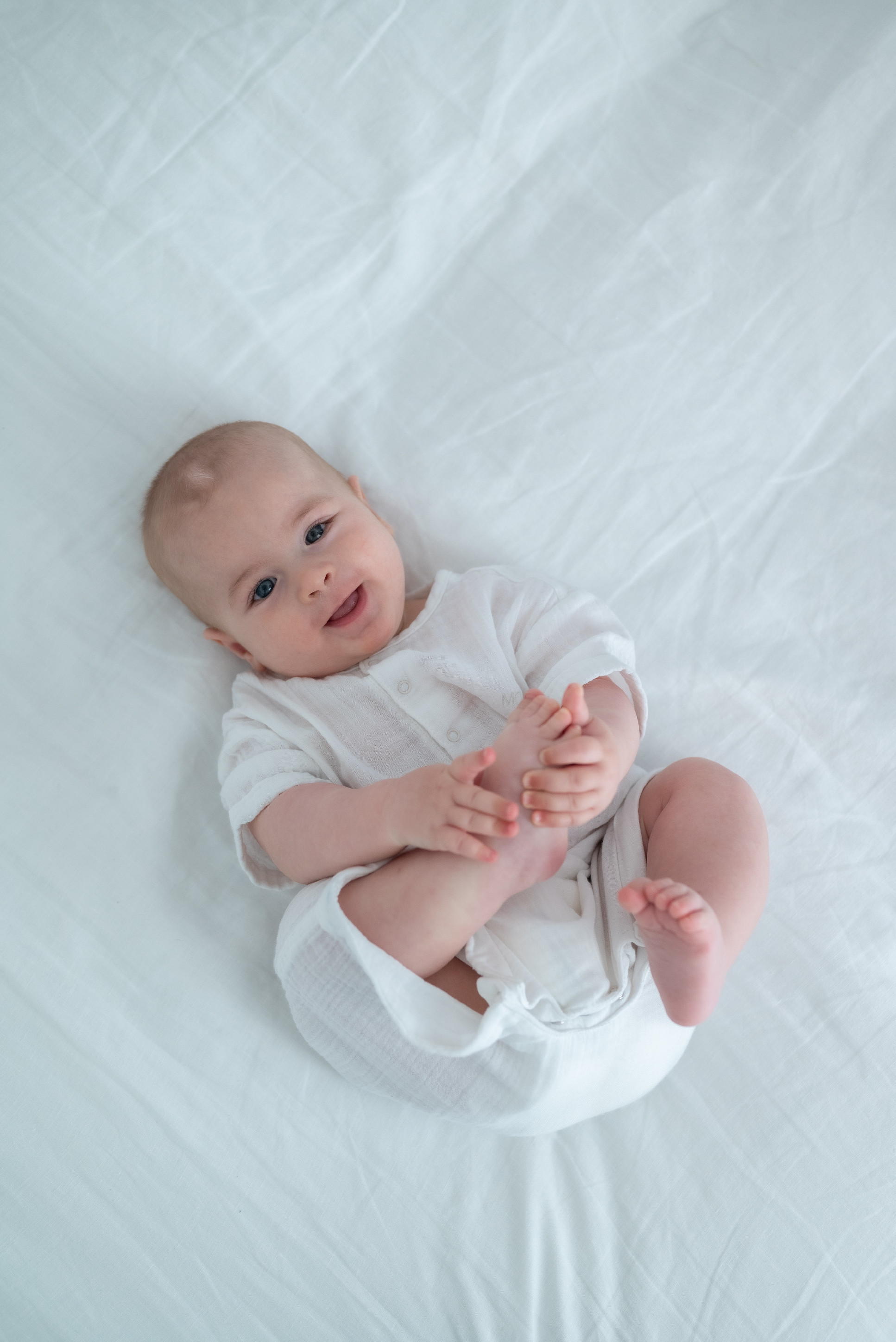 Overal je šitý z mušelínové bavlny. Díky tomu je extrémně prodyšný, jemný a ideální pro kontakt s citlivou pokožkou dítěte.