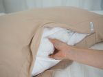 Polštář je ušitý z dvojitého potahu a má nastavitelnou výplň: