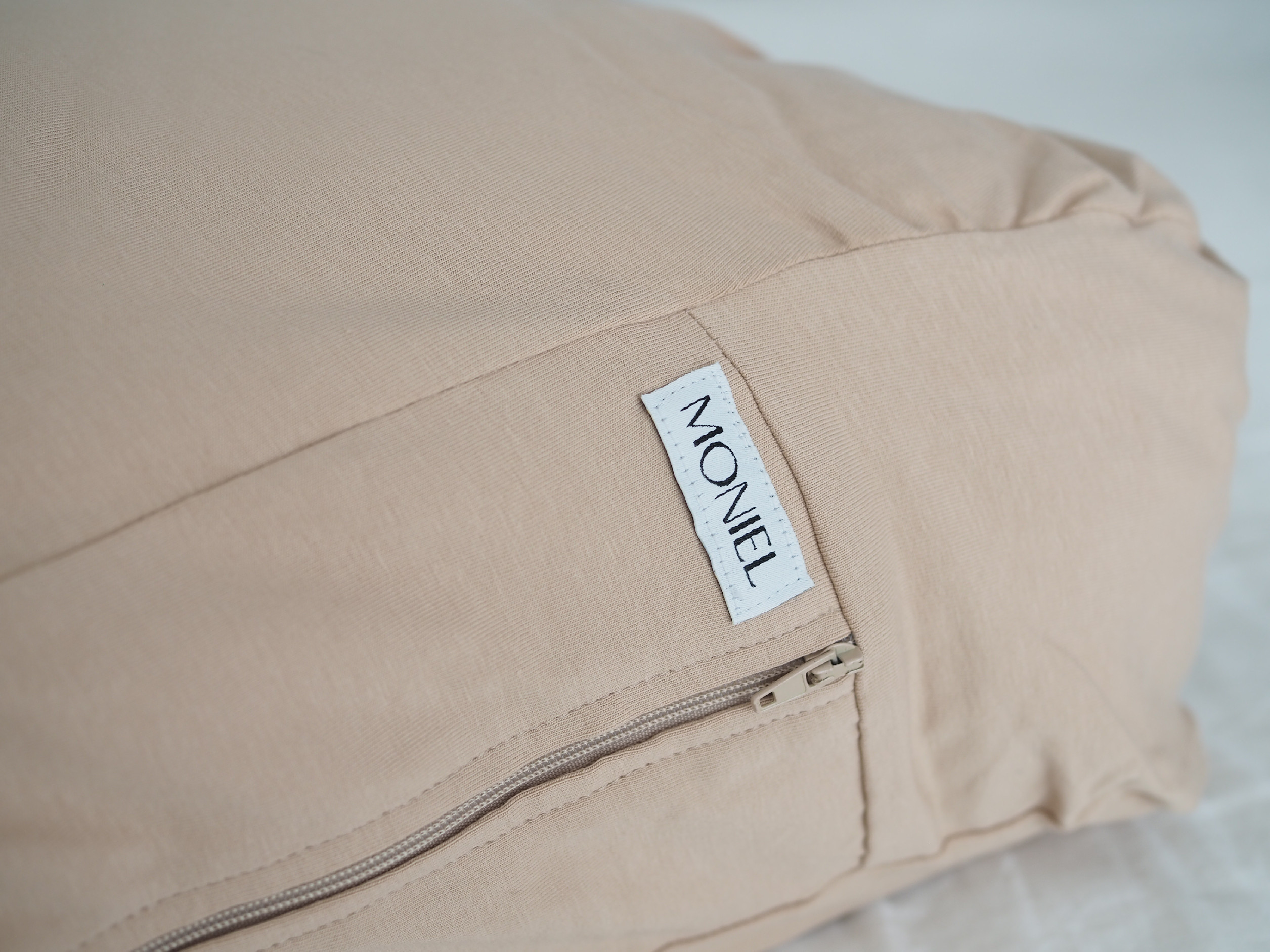 Kojící a těhotenský polštář Moniel Pastel béžový poskytne pohodlí a oporu během těhotenství a období kojení. Má dokonale propracovaný a vychytaný střih, který se liší od většiny kojících polštářků na trhu. Polštář má ergonomický tvar a rovné boky, takže část polštáře, na kterém miminko leží je rovná a není kulatá či zaoblená. Díky tomu miminko během kojení nesklouzává a může na polštáři pohodlně ležet. To usnadňuje napolohování miminka v průběhu kojení.