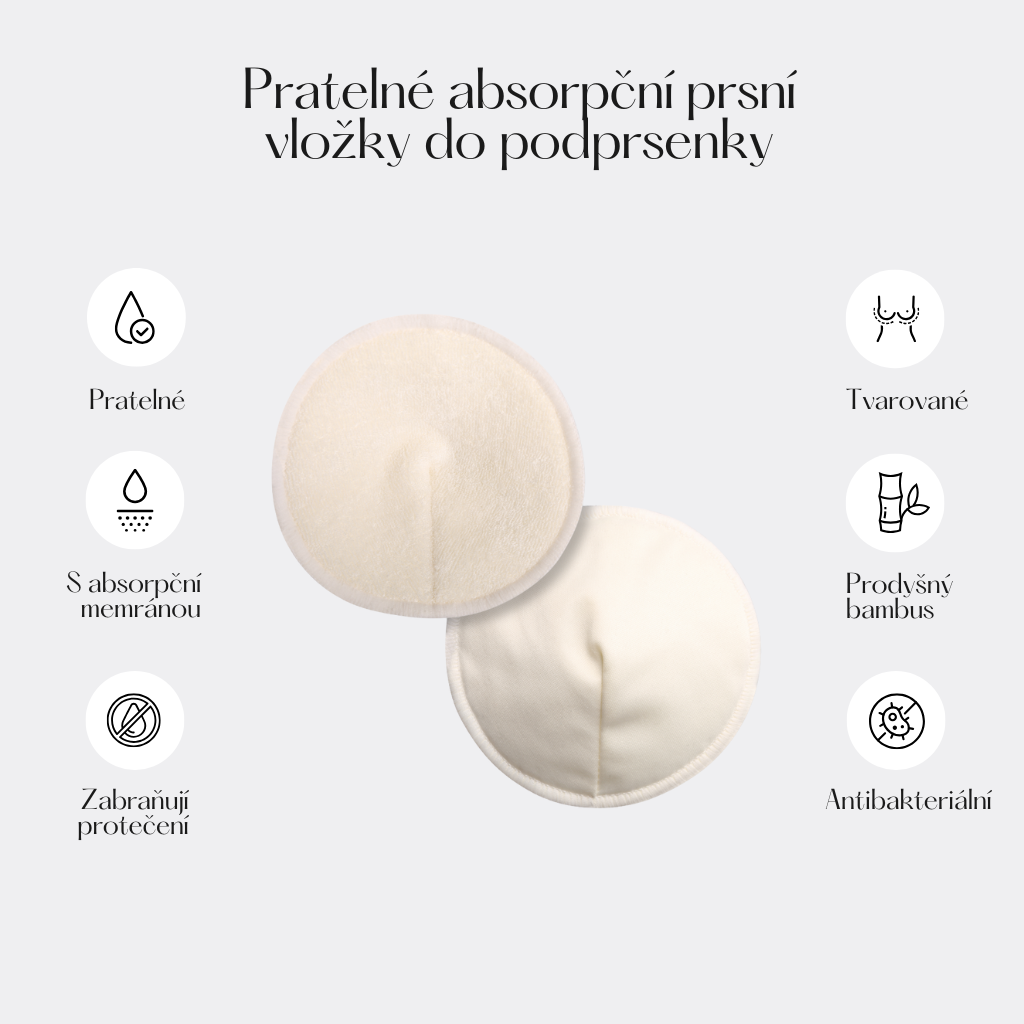 Bambusová kojicí podprsenka se speciální kapsou na vyjímatelné prsní vložky je vhodná pro denní i noční kojení. Má promyšlený střih a zavinovací výstřih, který umožňuje snadné a pohodlné kojení bez rozepínání. Součástí sady jsou 2 ks pratelných bambusových prsních vložek a prací sáček jako dárek. Vhodná pro malá i velká prsa.