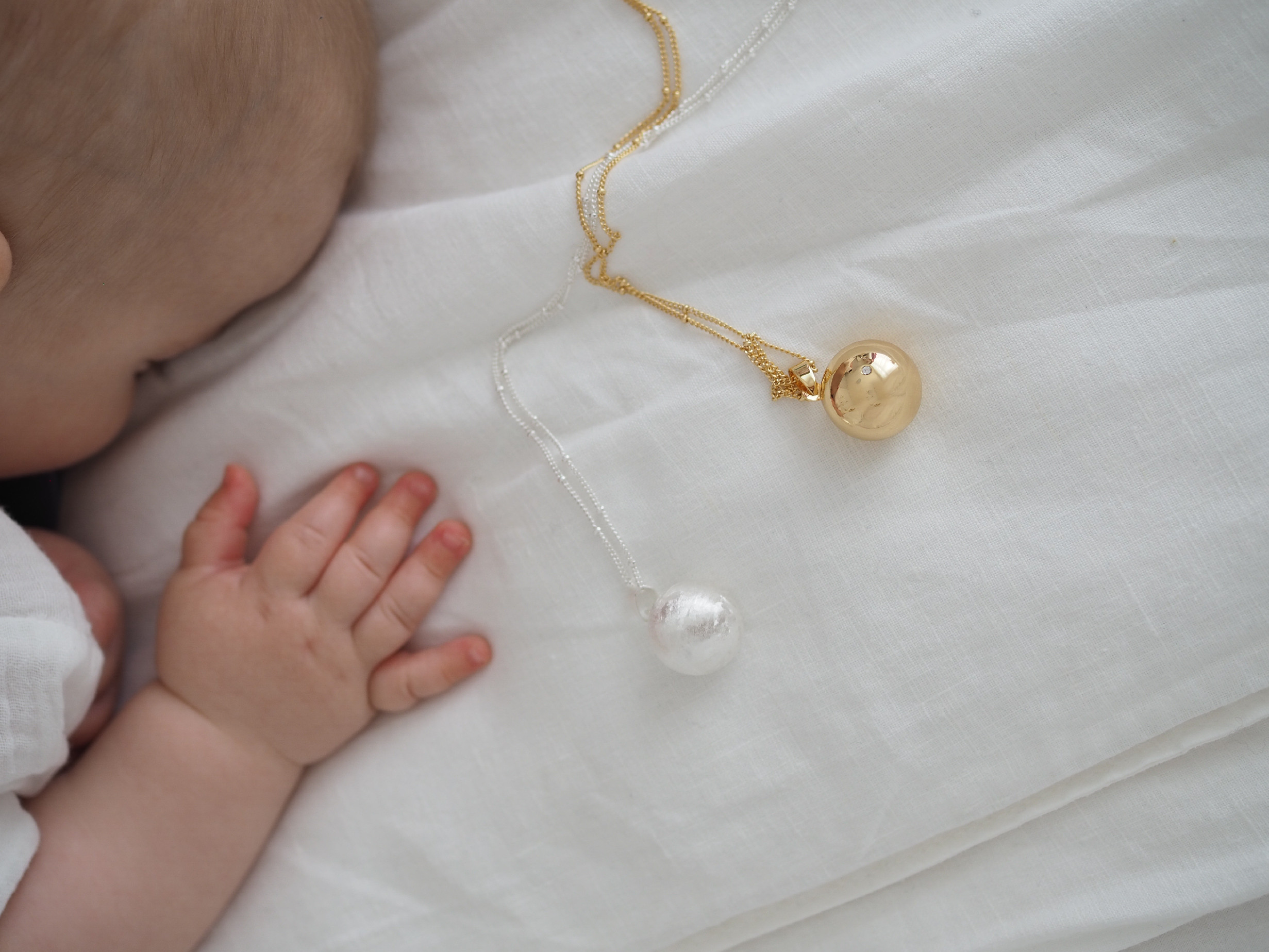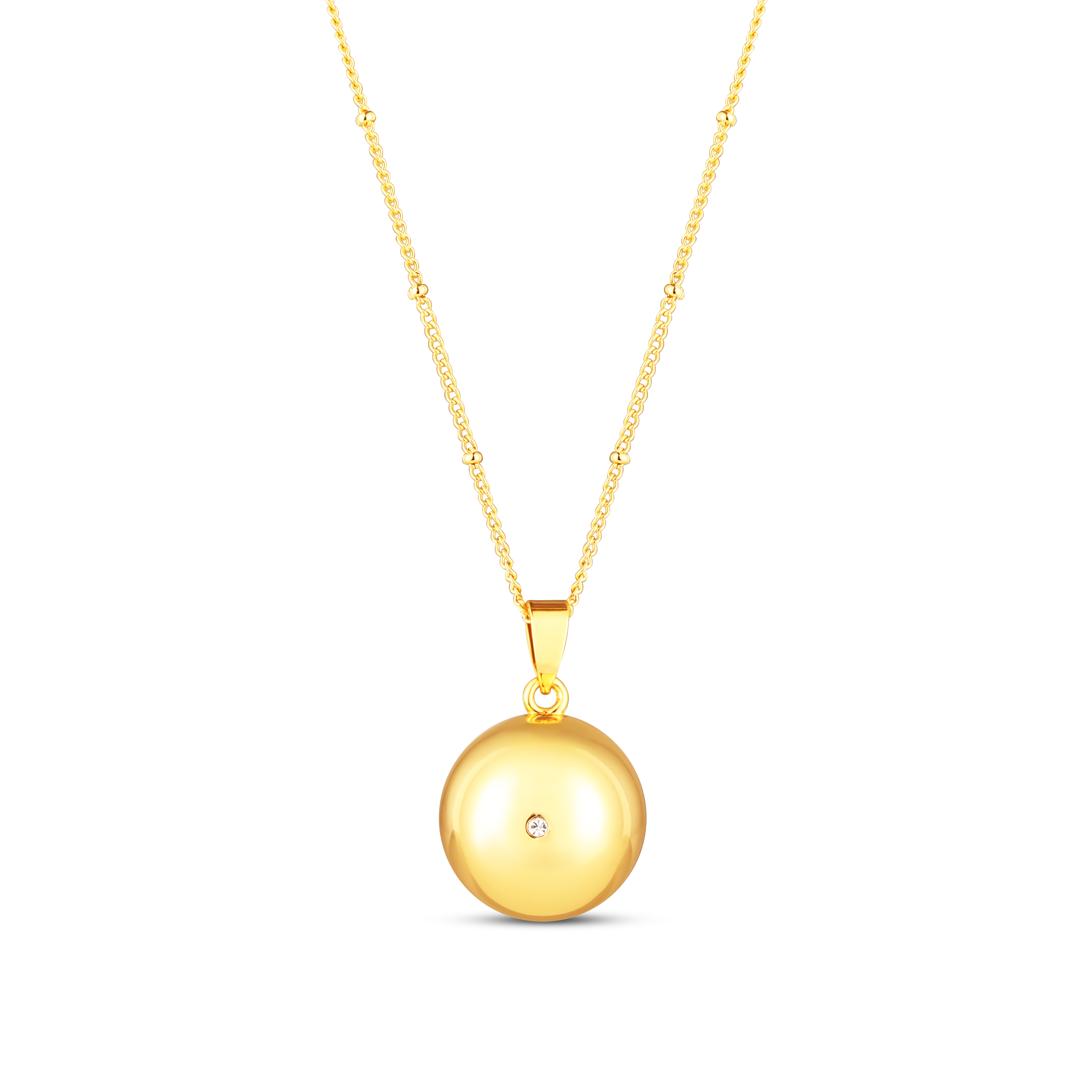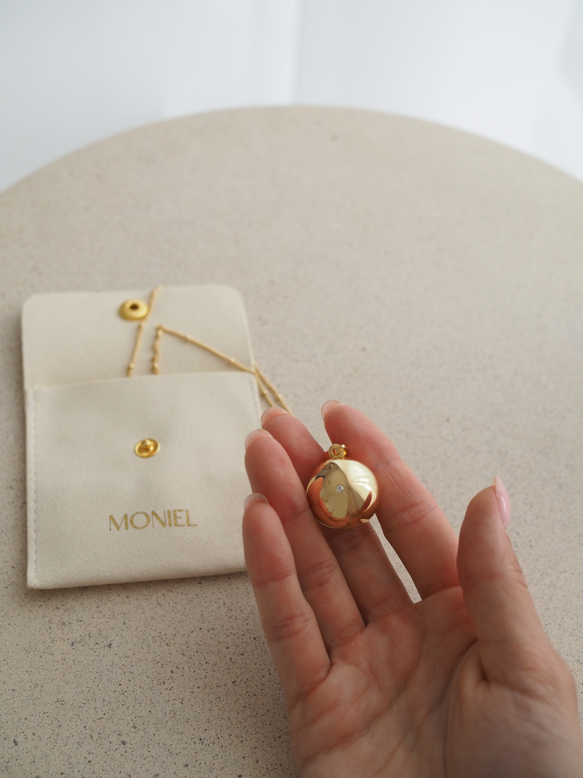 Těhotenská pozlacená bola Moniel Glow s řetízkem je nádherný šperk a symbol pouta mezi maminkou a miminkem. Nese v sobě lásku, klid a sílu a bude vás doprovázet na jedinečné cestě mateřstvím. Bolu unosíte nejen po celé období těhotenství, ale využijete ji i po porodu pro uklidnění miminka.