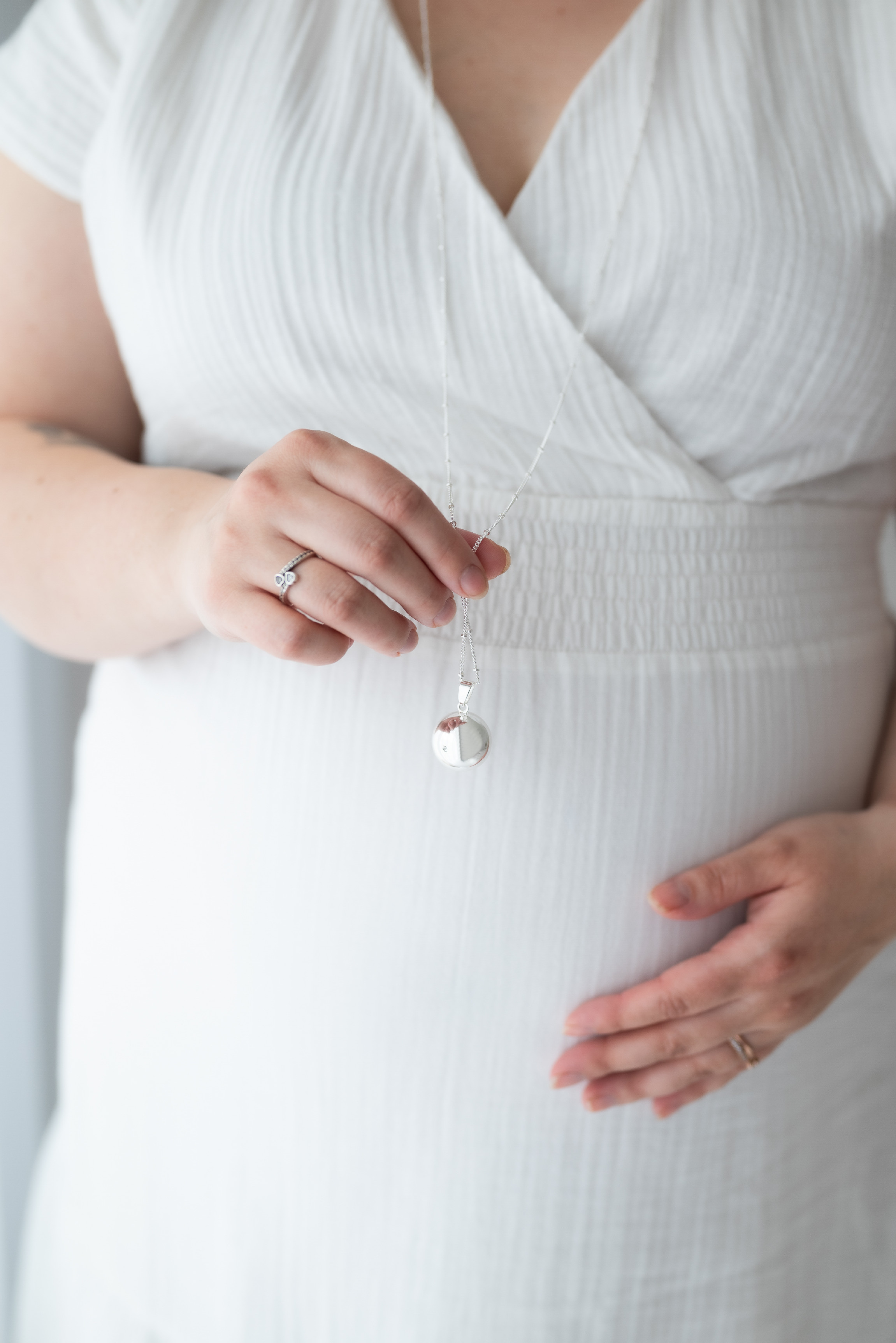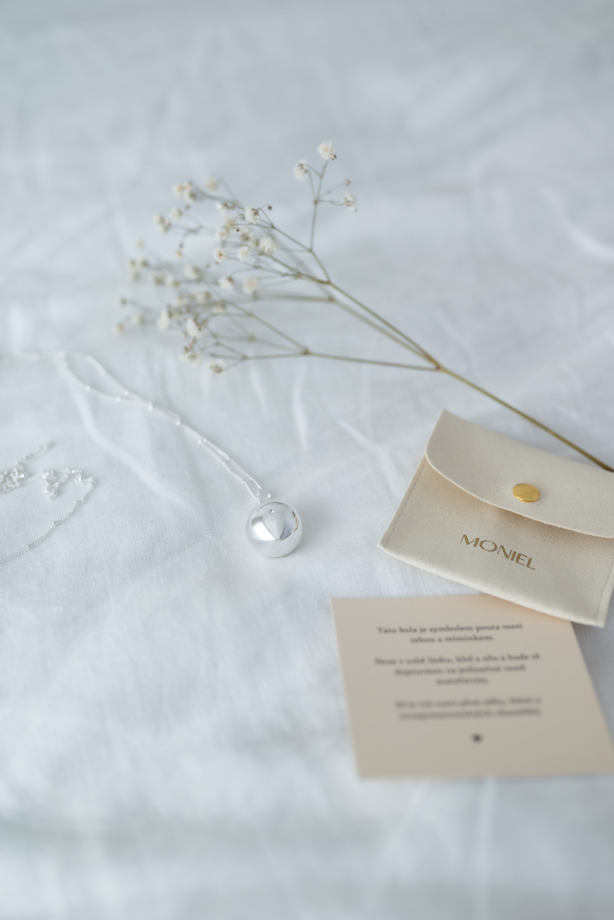 Těhotenská postříbřená bola Moniel Grace s řetízkem je nádherný šperk a symbol pouta mezi maminkou a miminkem. Nese v sobě lásku, klid a sílu a bude vás doprovázet na jedinečné cestě mateřstvím. Bolu unosíte nejen po celé období těhotenství, ale využijete ji i po porodu pro uklidnění miminka.