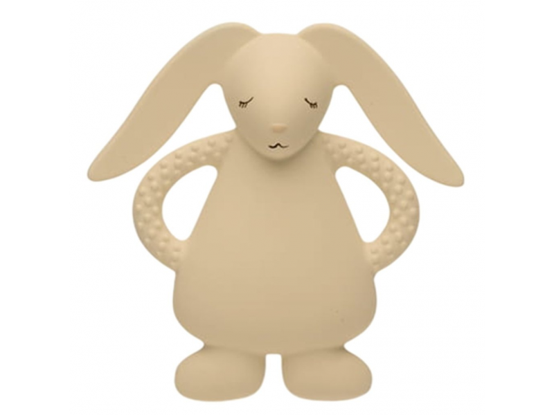 Kousátko MOONIE podobě něžného zajíčka z přírodního kaučuku bylo pečlivě navrženo tak, aby zklidnilo bolavé dásně během prořezávání zoubků a zároveň poskytovalo bezpečný a příjemný smyslový zážitek. Tvar a velikost kousátka umožňují snadné držení malými dětskými ručičkami, různorodé textury lákají dítě ke zkoumání. Hračka je ručně malovaná netoxickými potravinářskými barvami.