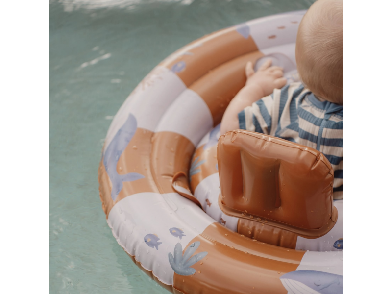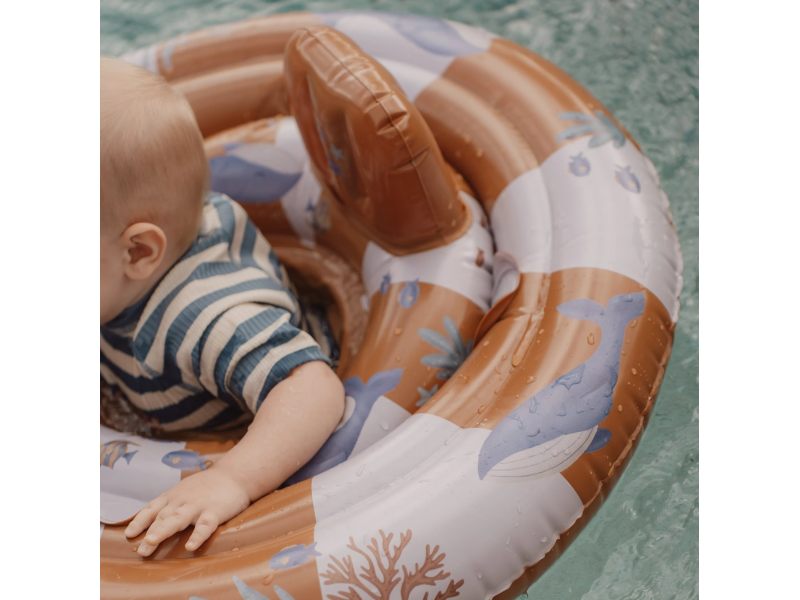 Nafukovací kruh do vody pro miminka s krásným potiskem motivů ze života pod mořskou hladinou je navržen tak, aby vašemu dítěti umožnil bezpečné první seznamování s vodou.