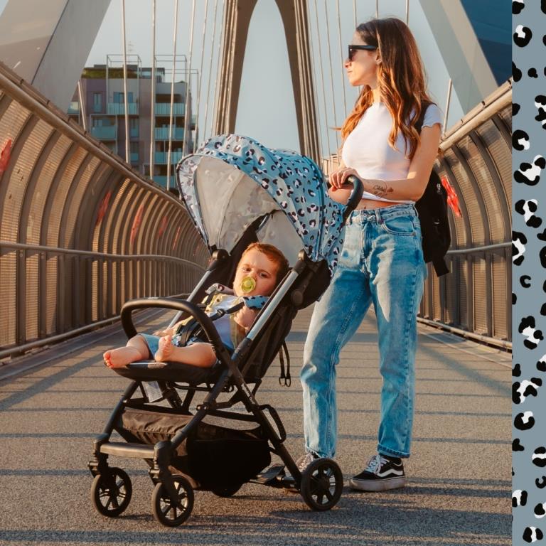 Náhradní potah na sedadlo a stříšku na sportovní kočárek Inglesina Quid 2023 v tmavošedé barvě se zvířecím vzorem Animalier Grey.