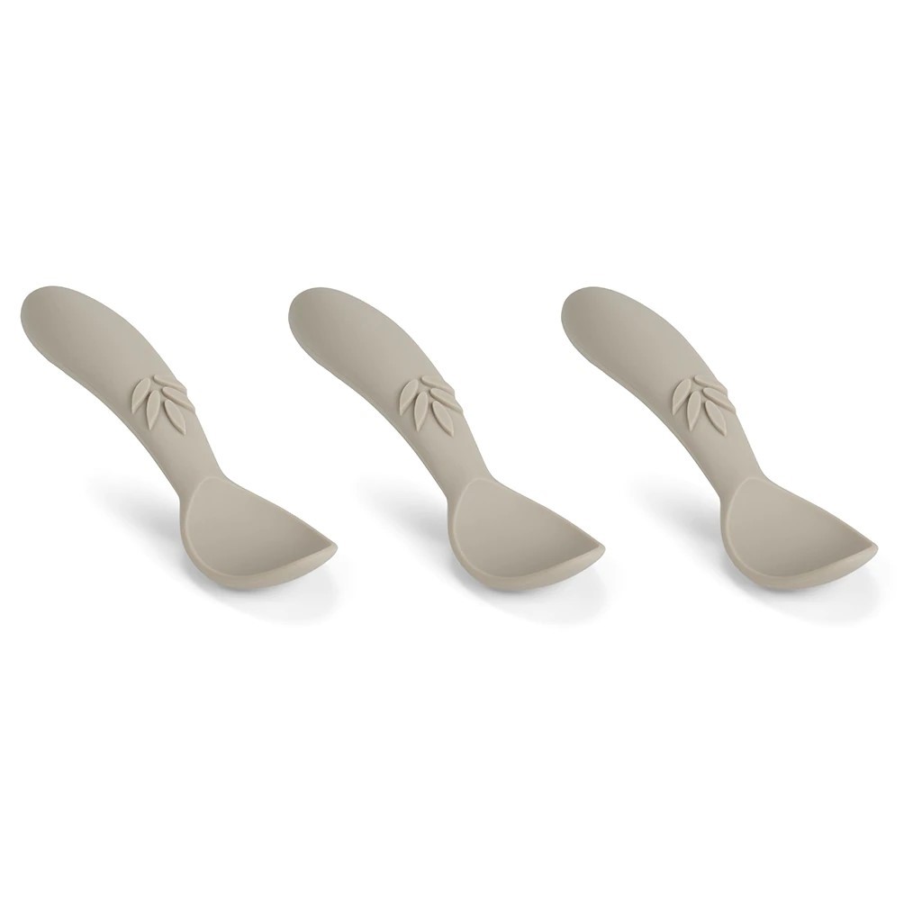 Silikonové lžičky vyrobeno z LFGB certifikovaného silikonu bez jakýchkoli škodlivých chemikálií vhodné do myčky nádobí tvar usnadňuje dětem nácvik správného úchopu při pádu na podlahu se nerozbije materiál: 100% silikon 3 ks v balení