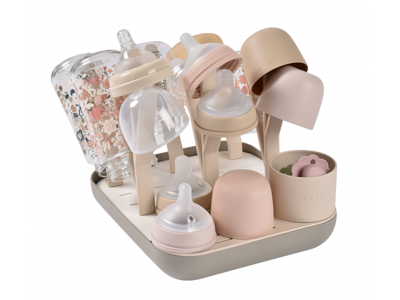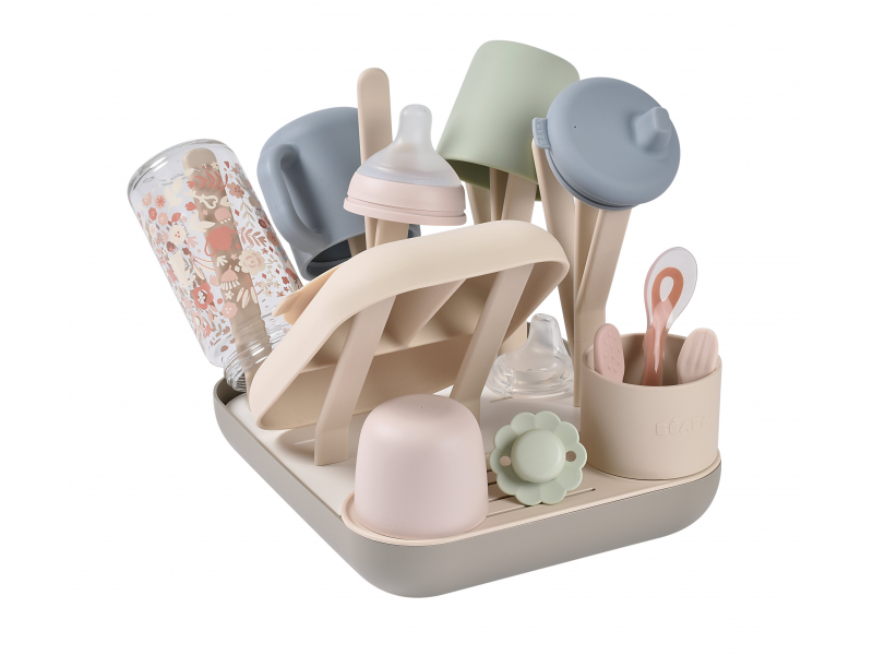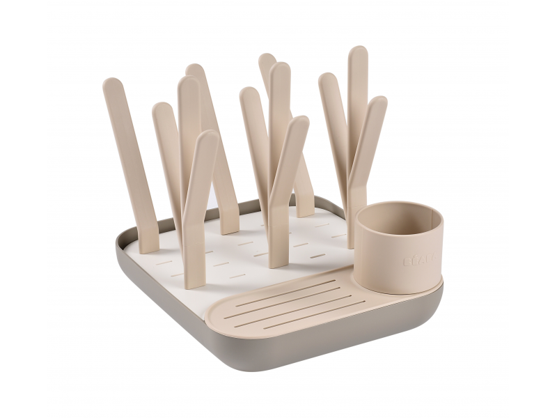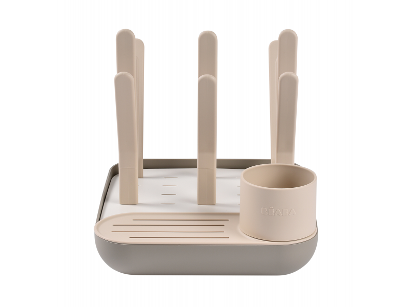 Variabilní stojan Beaba na sušení kojeneckých lahví, hrnků, misek, lžiček a doplňků. Stojan má vyjímatelné držáky a umožňuje tak přizpůsobit jeho uspořádání dle typu a velikosti nádobí, které na stojan potřebujete umístit. Odnímatelná základna usnadňuje údržbu stojanu a zároveň slouží pro uložení jednotlivých součástí stojanu, když jej právě nepoužíváte.