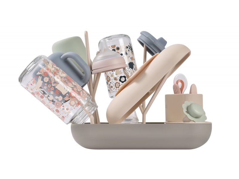 Stojan má kapacitu až 6 kojeneckých lahví a jejich příslušenství. Variabilní uspořádání umožňuje jeho použití pro jakékoli dětské nádobí.